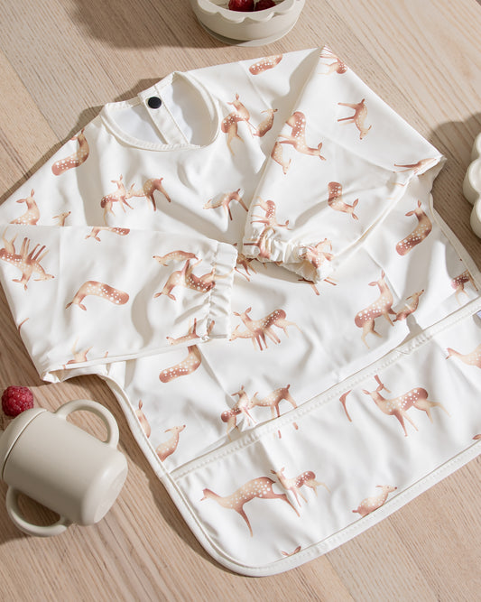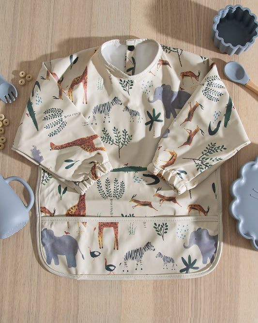 Långärmad Haklapp Med Förkläde - Djungeldjur Beige