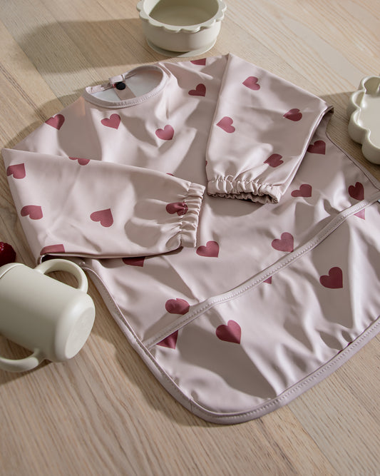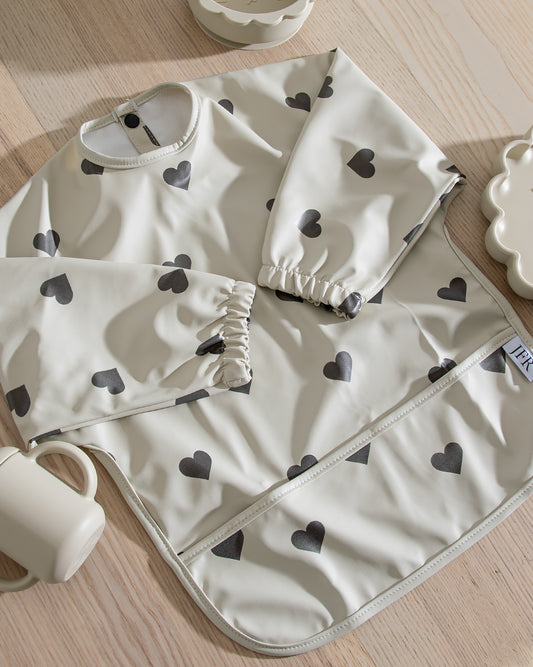 Långärmad Haklapp - Beige med hjärtan