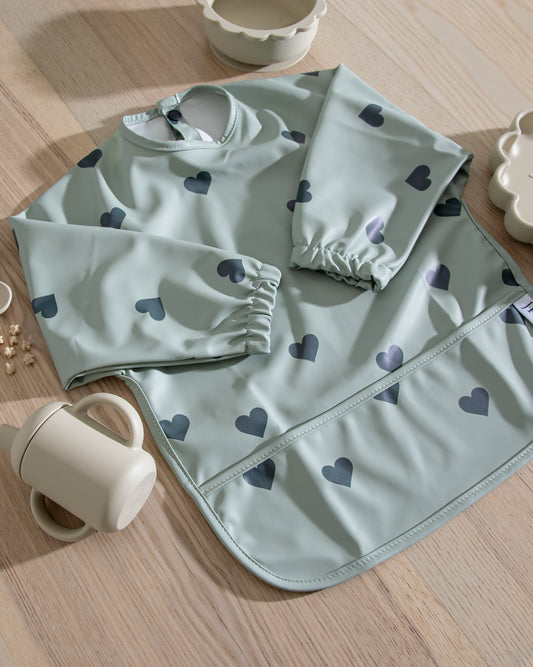 Långärmad Haklapp - Grön med hjärtan