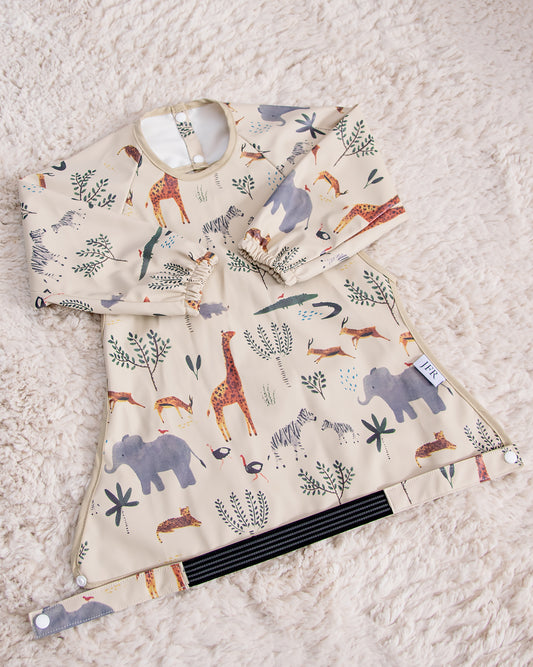 Långärmad Haklapp Med Förkläde - Djungeldjur Beige