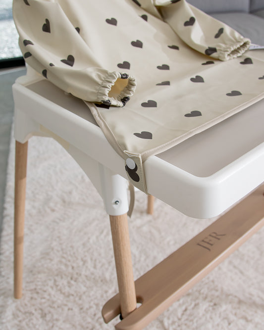 Långärmad Haklapp Med Förkläde - Beige med hjärtan