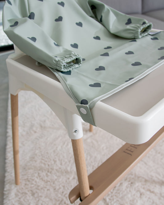 Långärmad Haklapp Med Förkläde - Grön med hjärtan