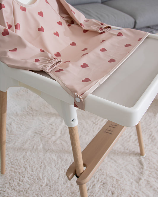Långärmad Haklapp Med Förkläde - Rosa med hjärtan