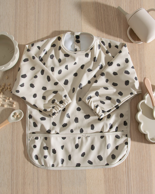 Långärmad Haklapp Med Förkläde - Pricken Beige