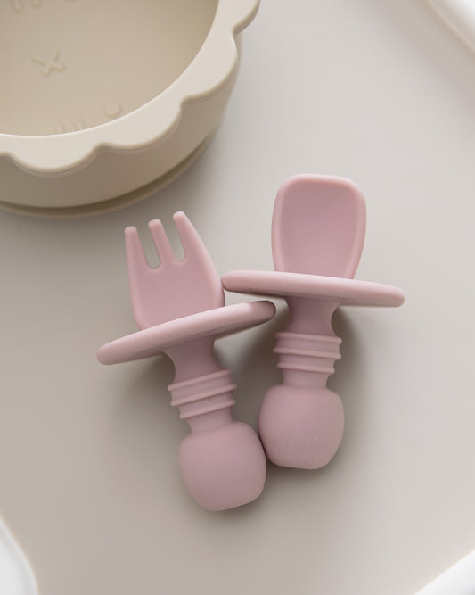 Pre-Spoon/Nybörjarsked & Gaffel - Dusty Pink (2 st)
