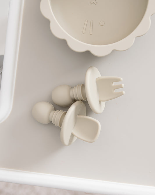 Pre-Spoon/Nybörjarsked & Gaffel - Beige (2 st)