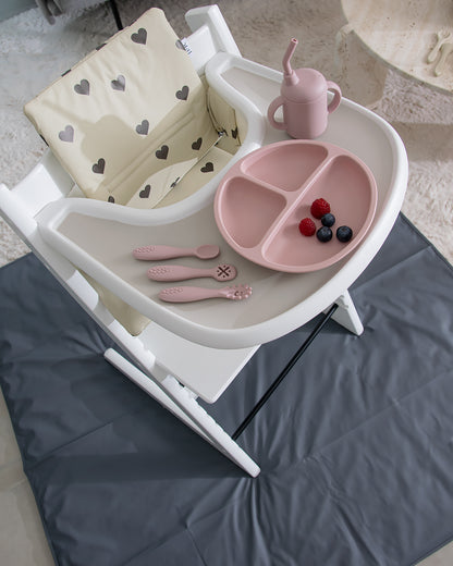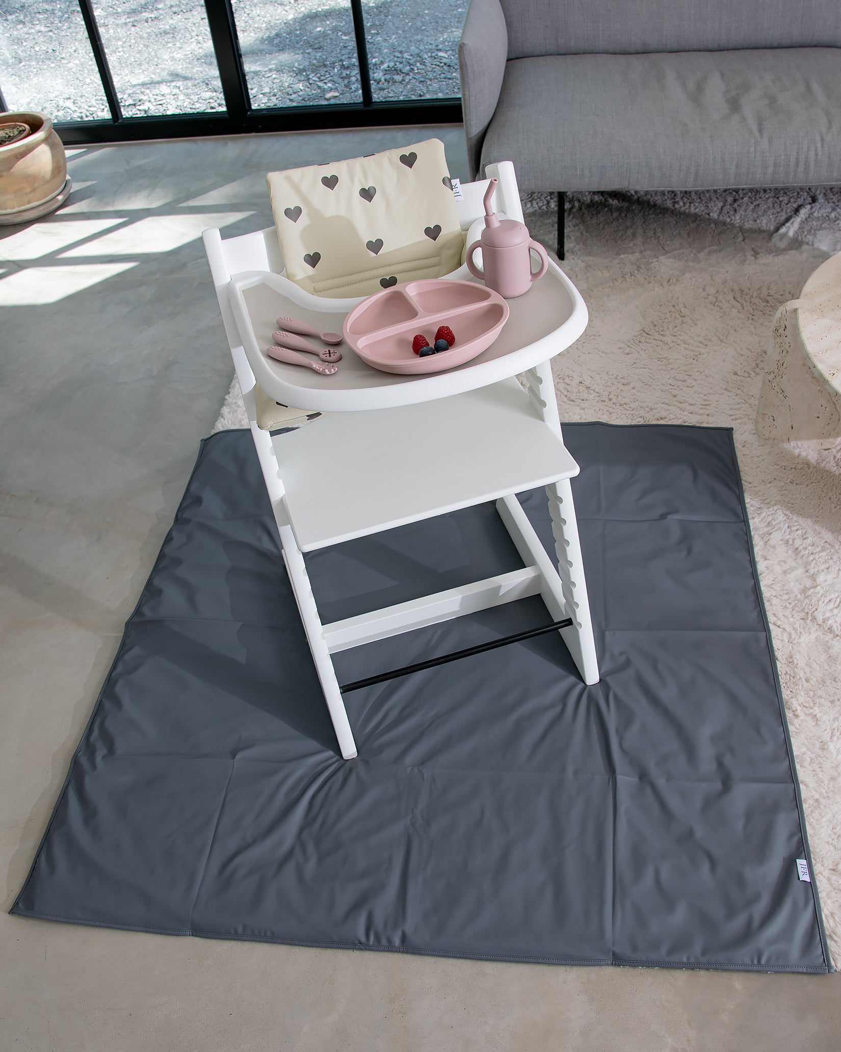 Beskytt gulvet ditt med vår fine, praktiske gulvbeskytter. Gulvbeskytteren er designet for å ha under barnestolen for enklere rengjøring etter måltider, for både du og jeg vet jo at ikke alt havner i magen på mini... Gulvbeskytteren er avtørkbar og om man ønsker går det fint å vaske den i maskin. Fungerer også til piknik, håndarbeid eller ute på terrassen for å unngå fliser. Bruksområdet er stort.
