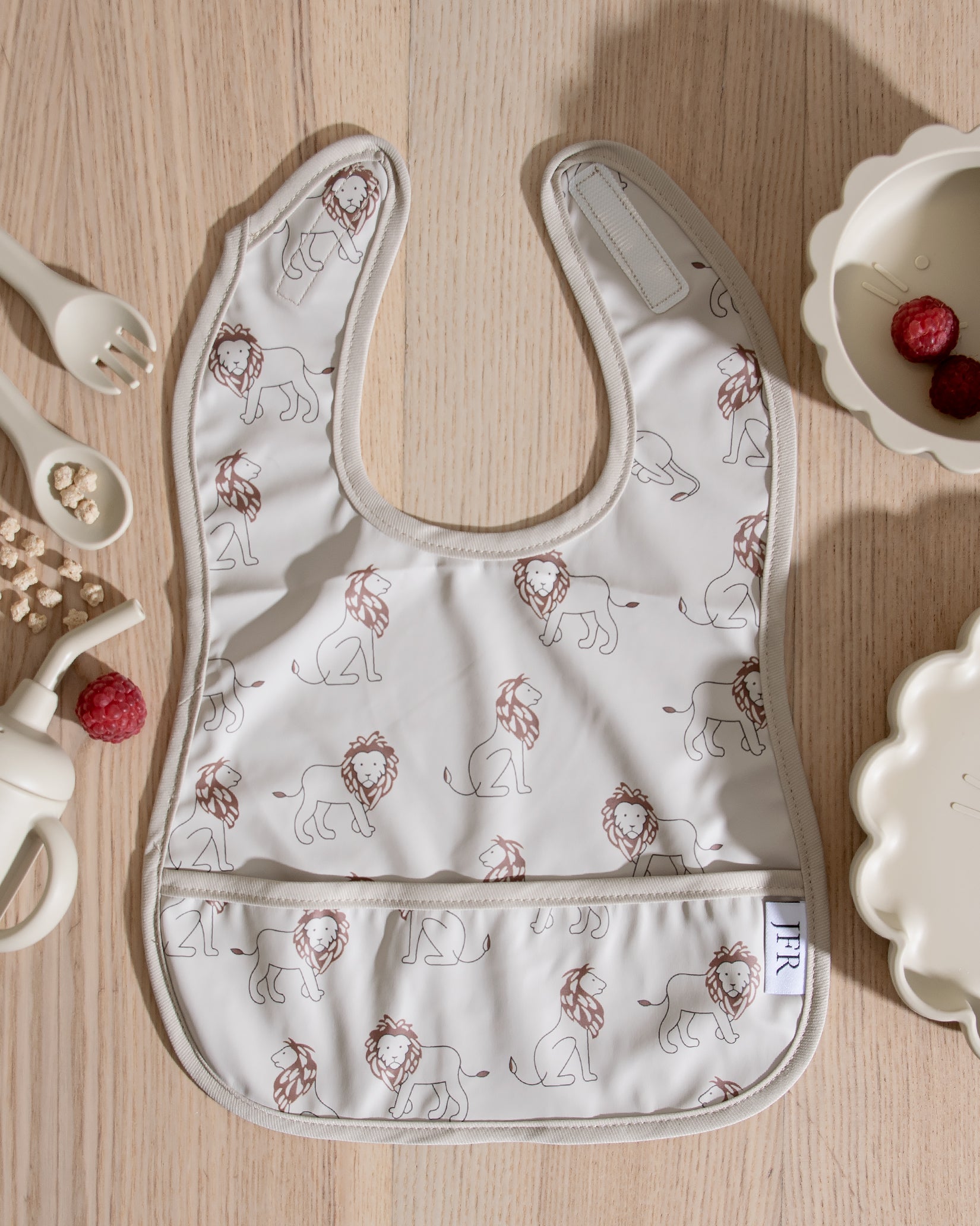 Vår avtorkbara och vattentäta haklapp är designad för att göra måltiderna enklare – både för barn och föräldrar. Med en smart uppsamlingsficka fångar haklappen effektivt upp makaroner, ärtor och allt annat gott som har en tendens att smita från tallriken.