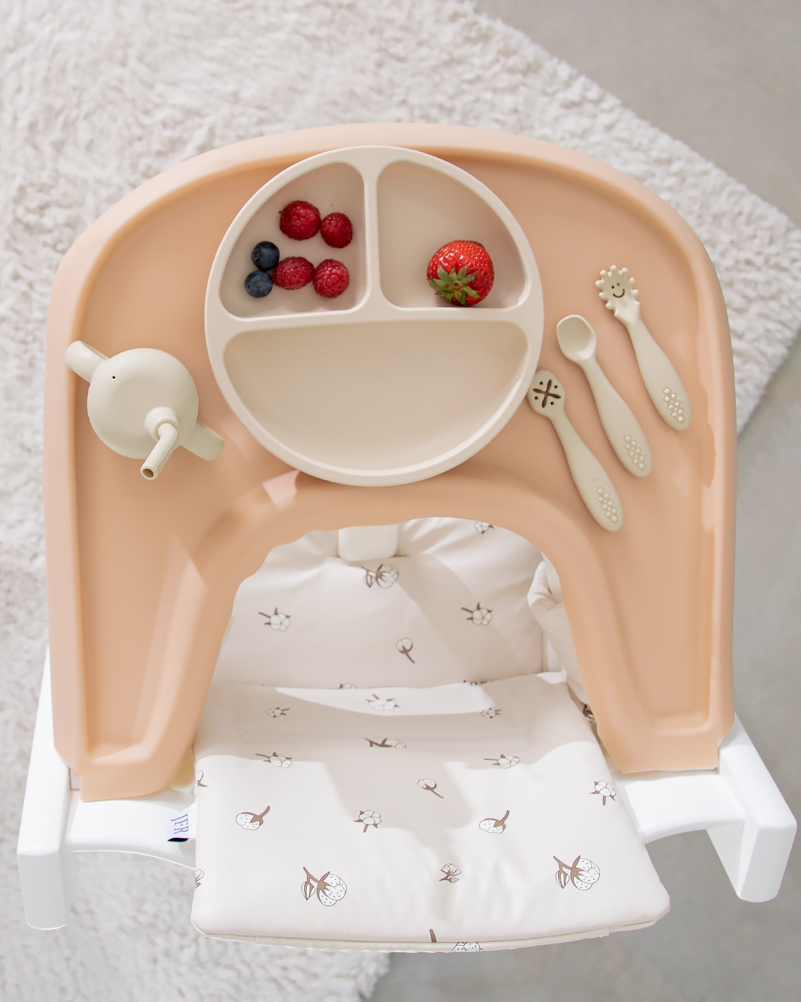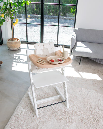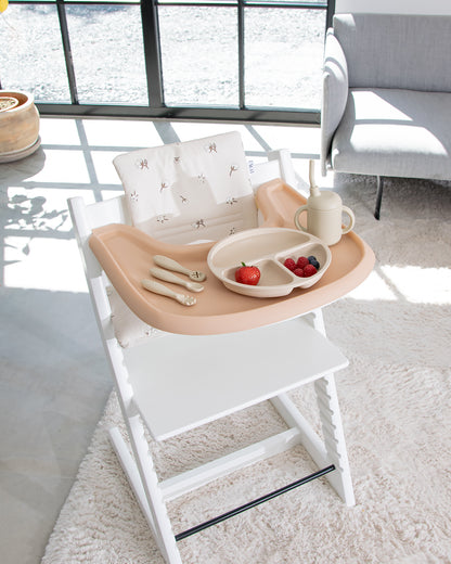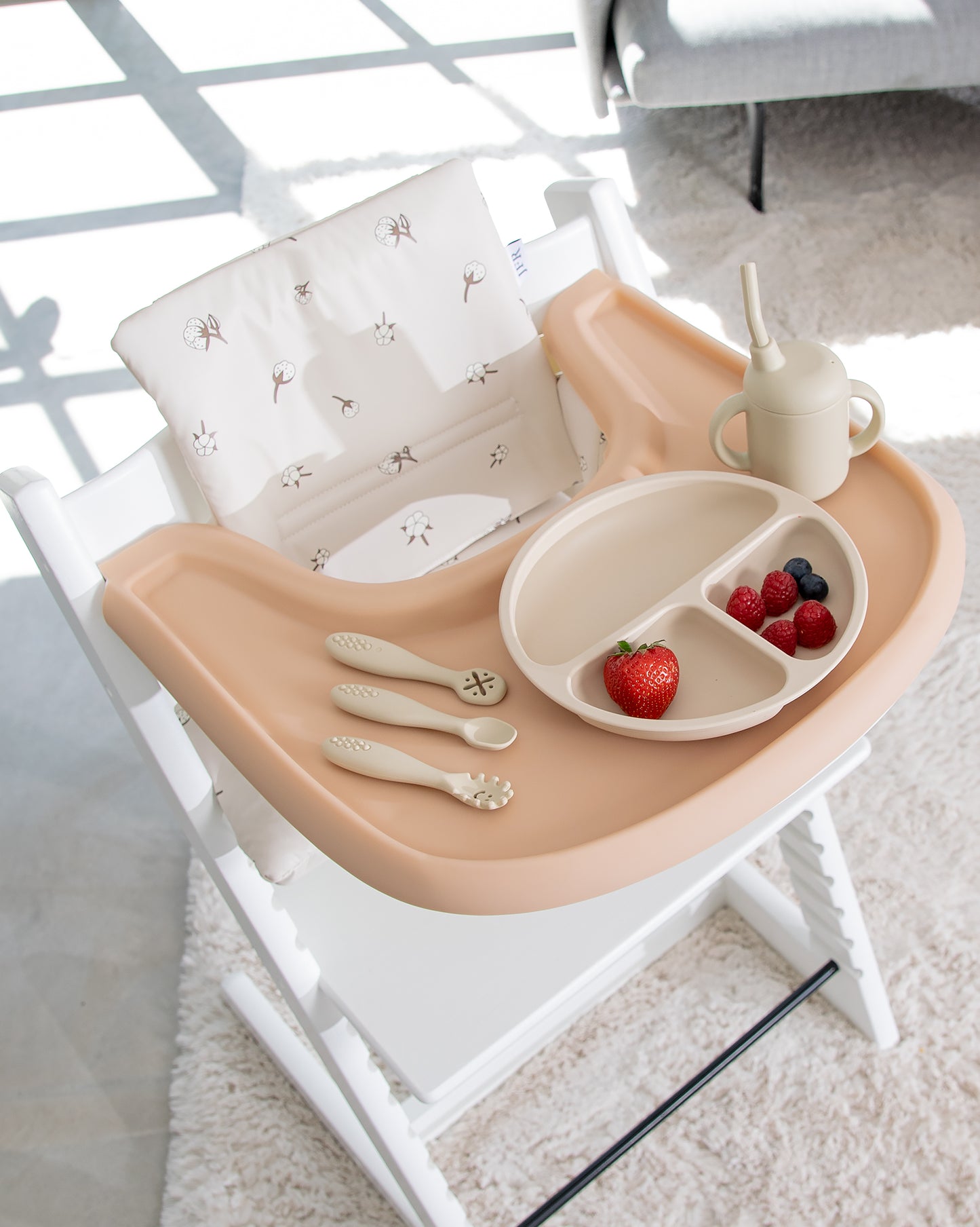 Detta bricköverdrag passar Stokke Tray, deras bricka för Tripp Trapp. Överdraget är tillverkat av silikon är både snyggt och funktionellt. Det är mjukt och följsamt och kan enkelt torkas av eller diskas i maskin om man önskar det. Matcha med våra fina dynor för Stokke för en total makeover av din barnstol.