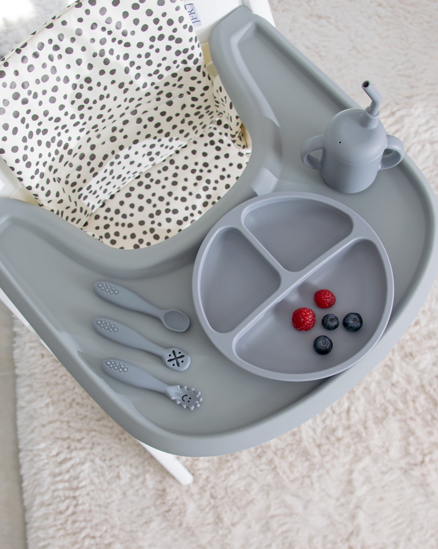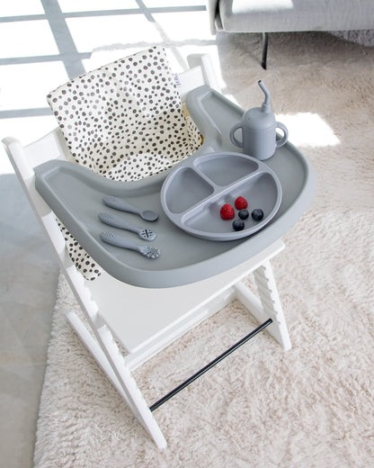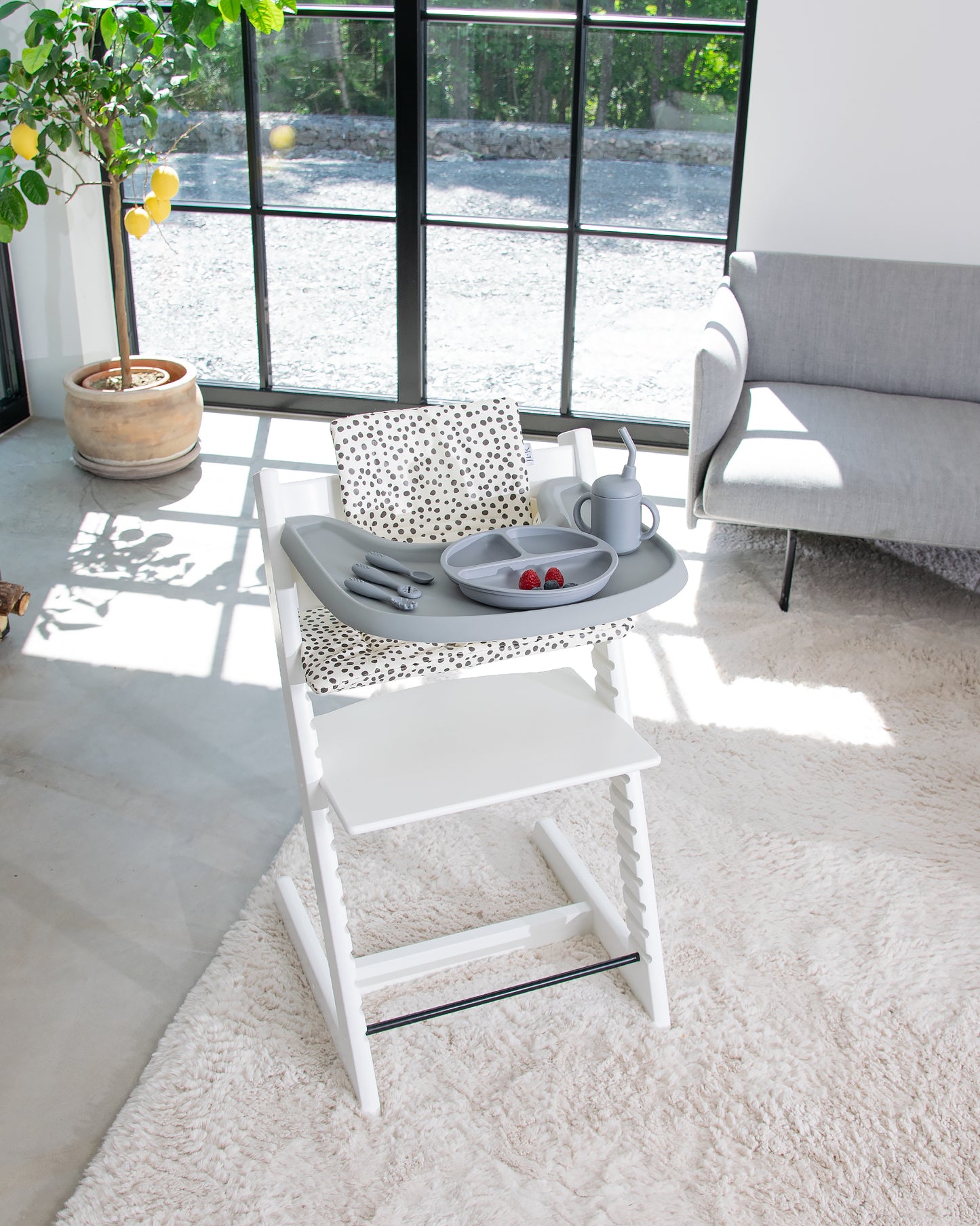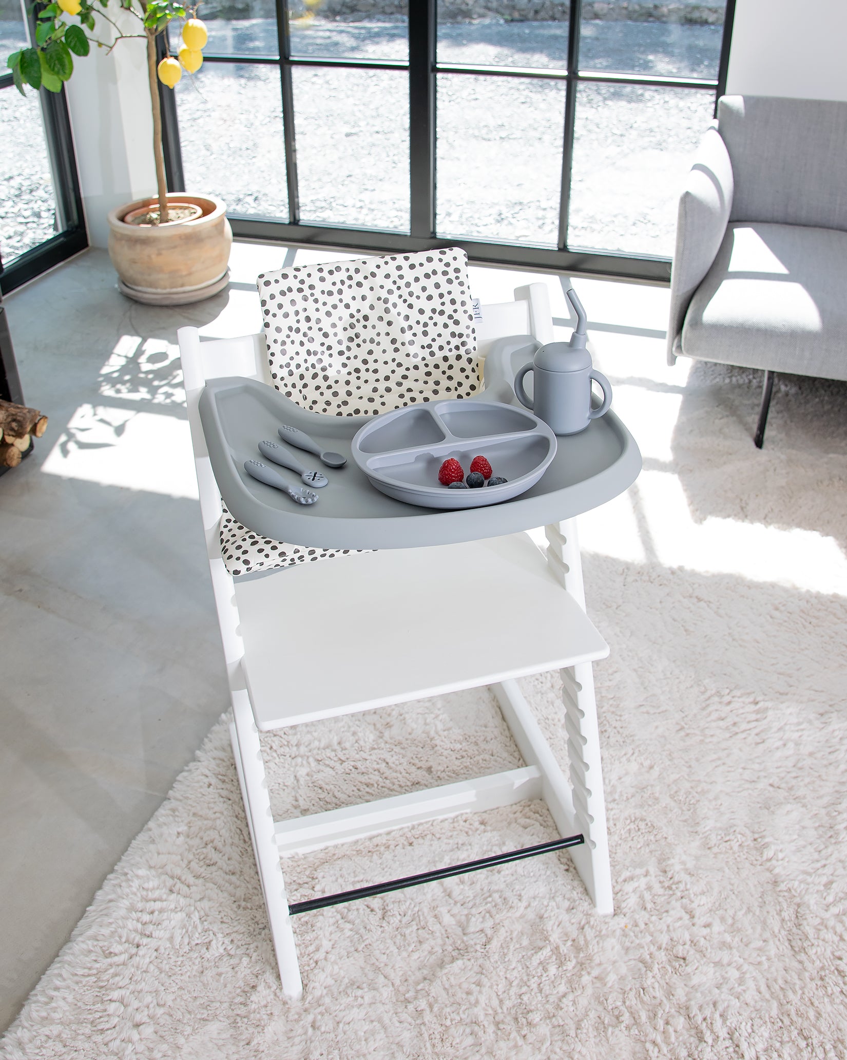 Detta bricköverdrag passar Stokke Tray, deras bricka för Tripp Trapp. Överdraget är tillverkat av silikon är både snyggt och funktionellt. Det är mjukt och följsamt och kan enkelt torkas av eller diskas i maskin om man önskar det. Matcha med våra fina dynor för Stokke för en total makeover av din barnstol.