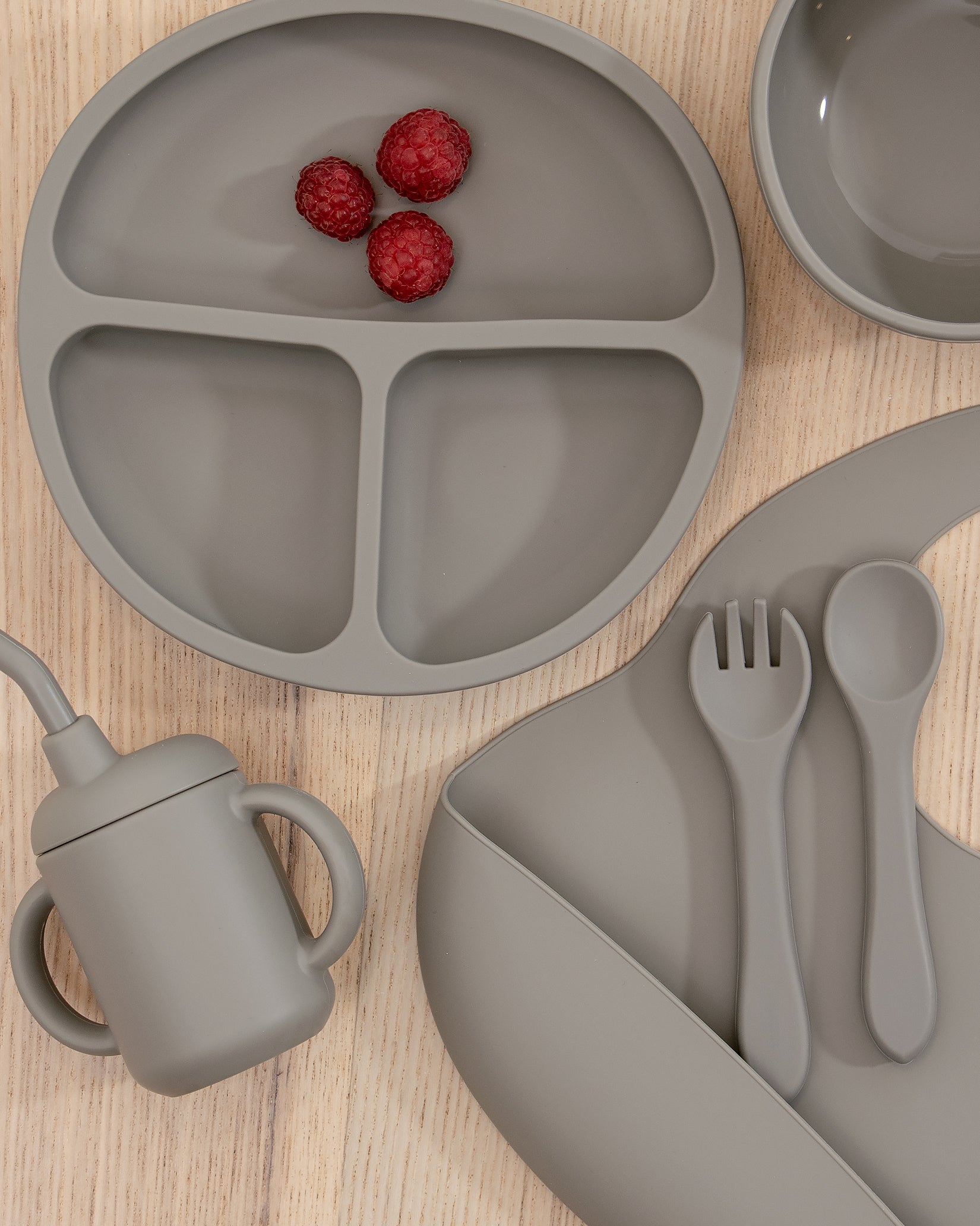 Den ultimata presenten till dopet eller kalaset. Här sparar du 195 kr mot att köpa allt löst. I denna lyxiga, kompletta barnservis har vi samlat allt som behövs för att lära barnet att äta självständigt. Materialet är slitstarkt och tåligt så detta är ett set man kan använda i lång tid. Allt på bilden ingår. Sugröret har stopp och tallriken har 4 sugproppar under.